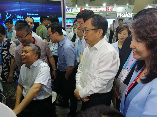 董事長王聯(lián)向工信部副部長張克勤介紹公司的中醫(yī)綜合診斷系統(tǒng),中醫(yī)醫(yī)聯(lián)體及中醫(yī)機器人在全國基層醫(yī)療和養(yǎng)老方面的應用情況。